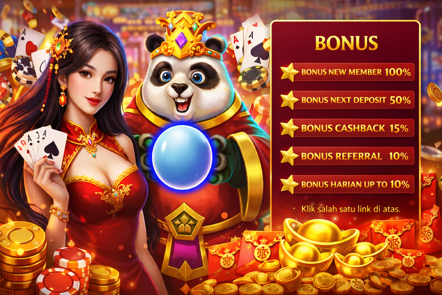 Nikmati bonus member baru, cashback, dan promo harian spesial.